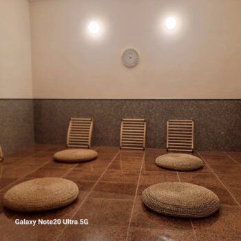 地場の土を突き固めたブロックの壁と、けいそう土の壁を作りました。